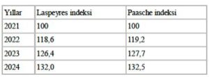Yukarıdaki tabloya göre 2024 yılına ait Fisher’in ideal indeks değeri aşağıdakilerden hangisidir?