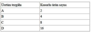 Yukarıdaki tabloda verilen kusurlu ürün sayılarına göre geometrik ortalama nedir?