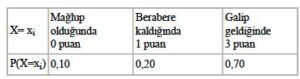 Yukarıdaki tabloya göre futbol takımının yaptığı maçlarda kazandığı puanların beklenen değeri aşağıdakilerden hangisidir?